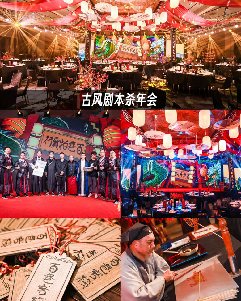 剧本杀+年会,让员工沉浸式角色扮演,边参与边游戏,从而推动剧情发展甚至影响剧情走向。